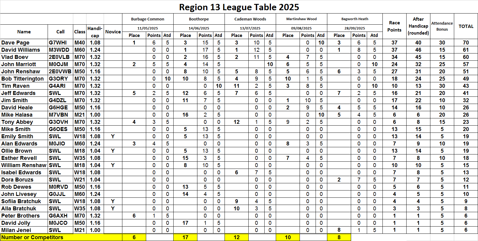 5. The league table shows that we had 27 different people competing in the 2025 Region 13 (East Midlands) Series'